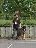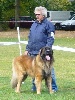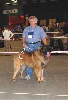 DCC. Belle couleur acajou. Bonne fourrure. De l'os. Epaule droite, sort des antérieurs. Jarret correct. Poitrine étroite. Tête puissante, bien masqué, ?il foncé un peu ouvert. Crâne puissant. Babines un peu lâches. Pigmentation moyenne. Jarrets très serrés en mouvement. Arrière-main instable. Tendance à ambler. Bon caractère